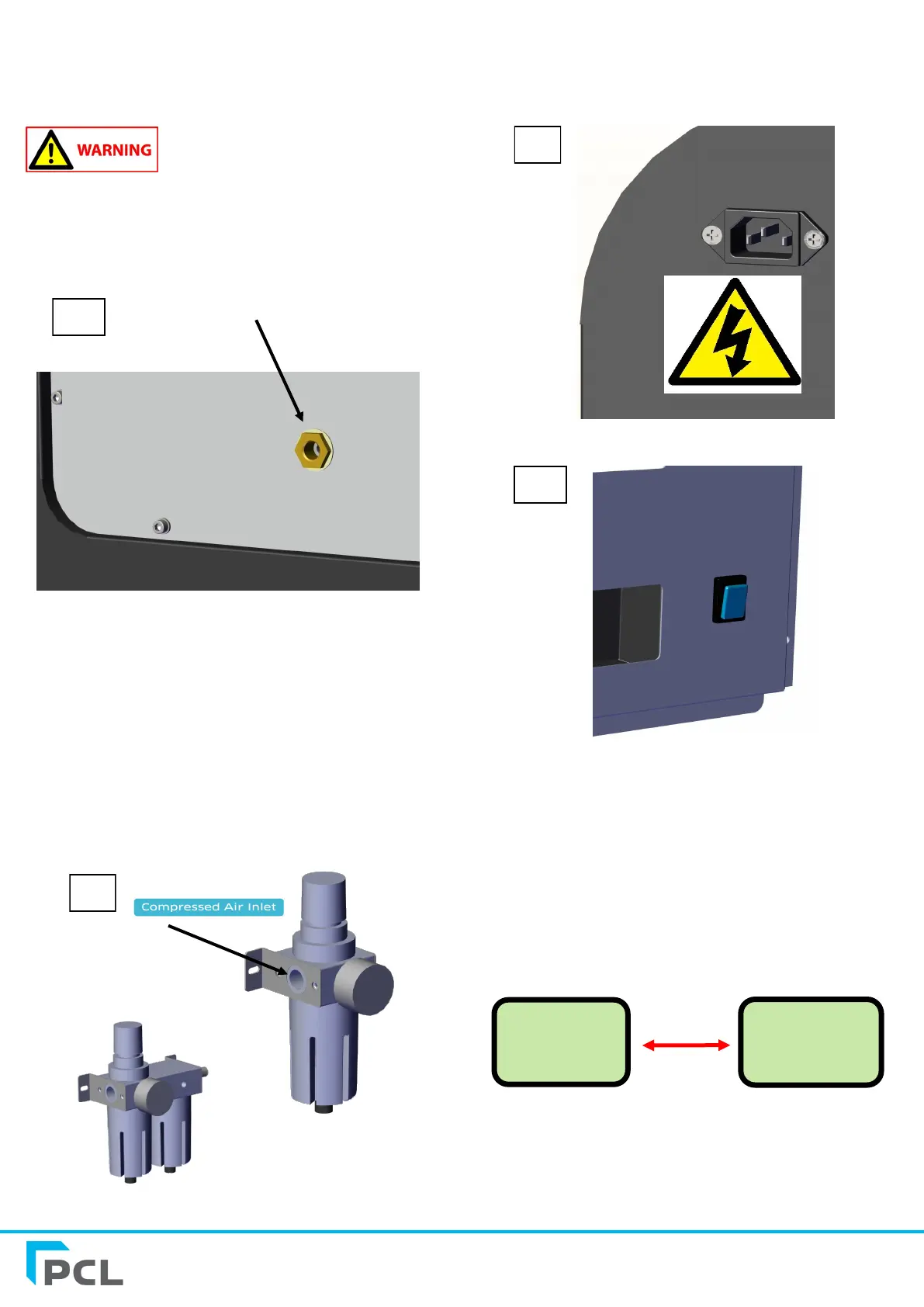 conecte à alimentação de ar normal usando o soquete fornecido.
