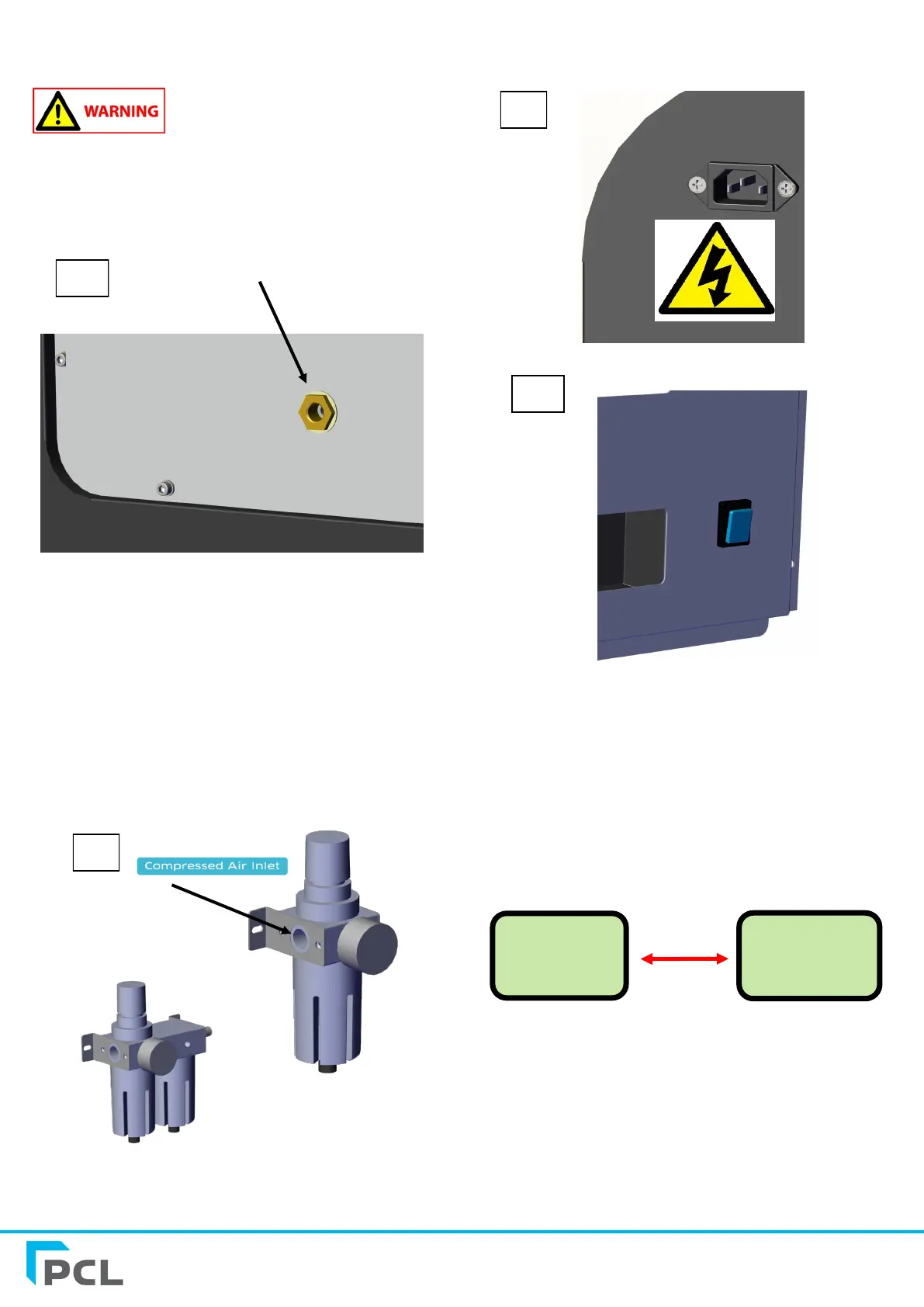 1. Eseguire il collegamento all'alimentazione dell'aria inserendo il