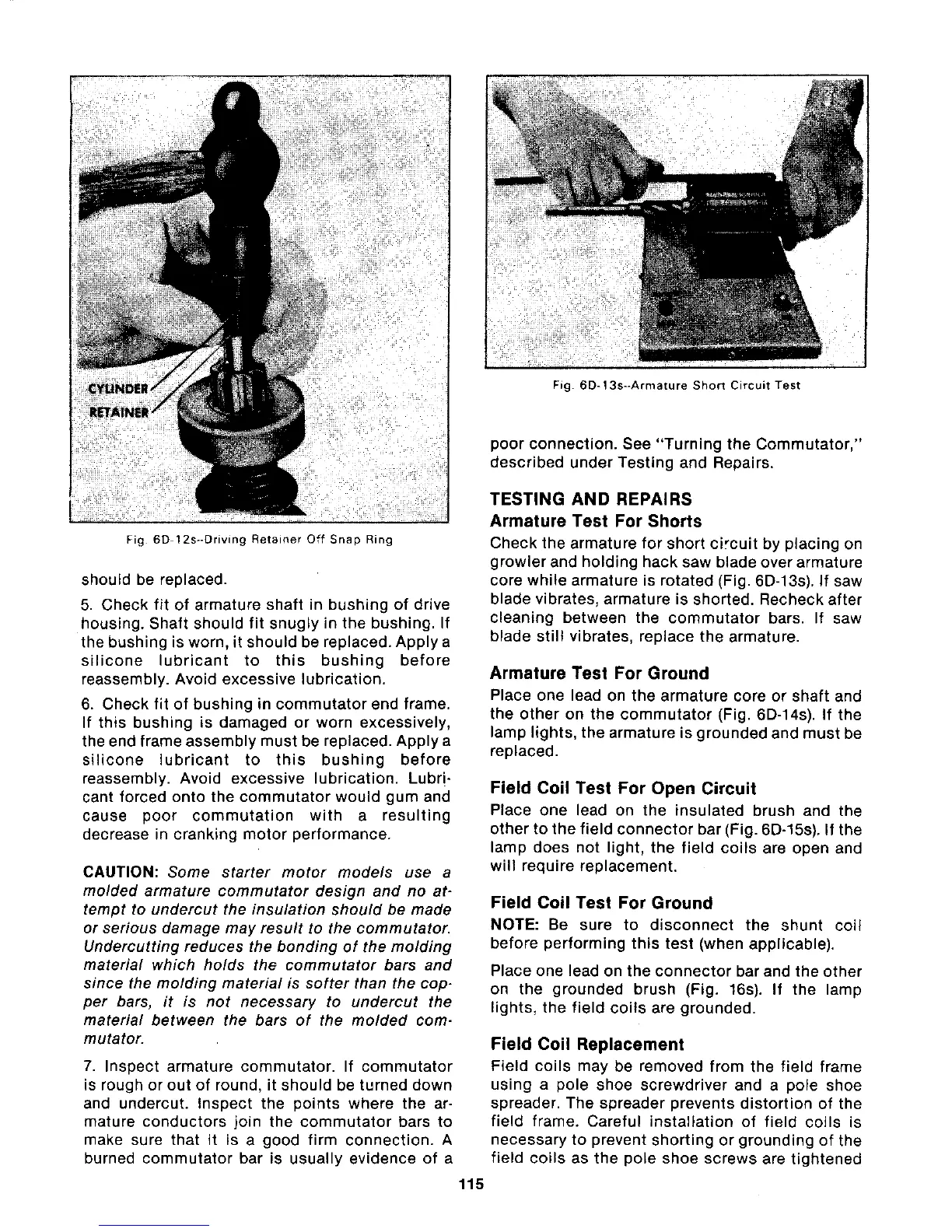 PCM 302 - Armature Test for Shorts; Armature Test for Ground; Field Coil Test for Open Circuit;Field Coil Test for Ground; Field Coil Replacement