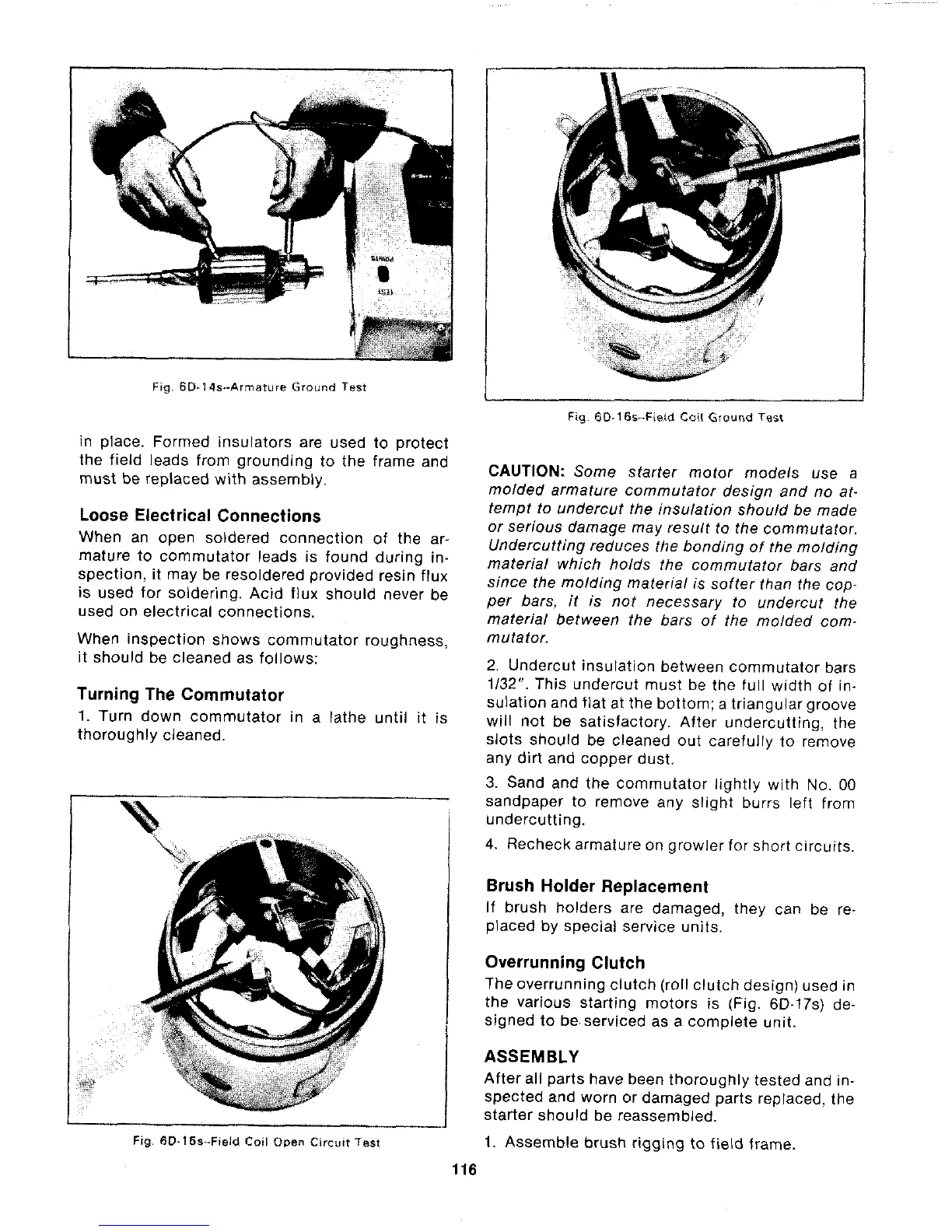 PCM 302 - Delco Starting Motor Assembly; Loose Electrical Connections; Turning the Commutator; Brush Holder Replacement;Overrunning Clutch