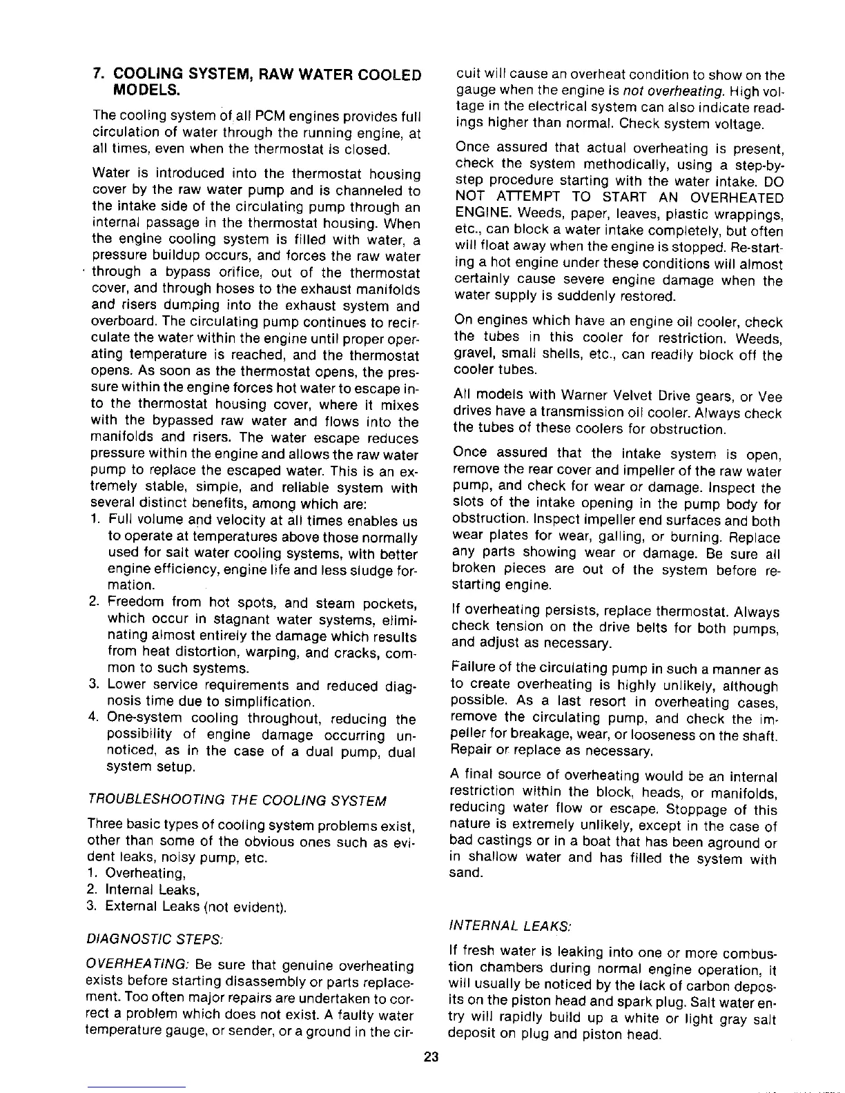 PCM 302 - Cooling System, Raw Water Cooled Models; Troubleshooting the Cooling System; Overheating; Internal Leaks