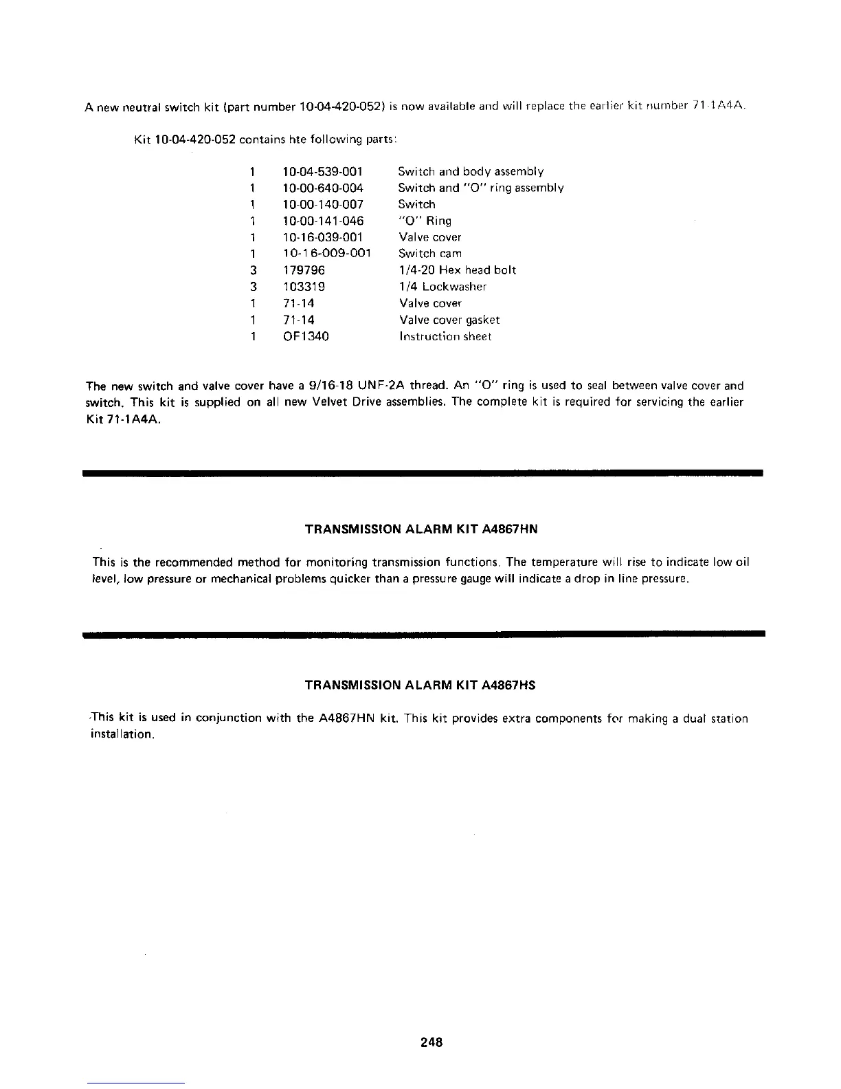 PCM 302 - Neutral Switch Kit; Transmission Alarm Kits
