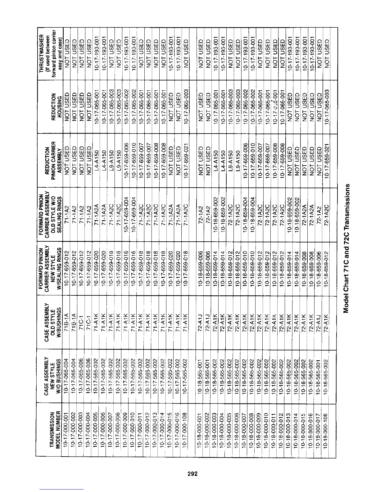 PCM 302 - Model Chart 71 C and 72 C Transmissions