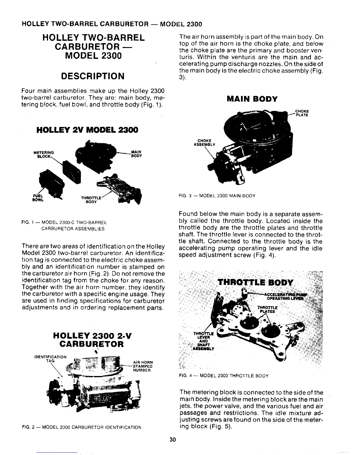 PCM 302 - Holley Two-Barrel Carburetor - Model 2300 Description; Main Body (Carburetor Model 2300); Throttle Body