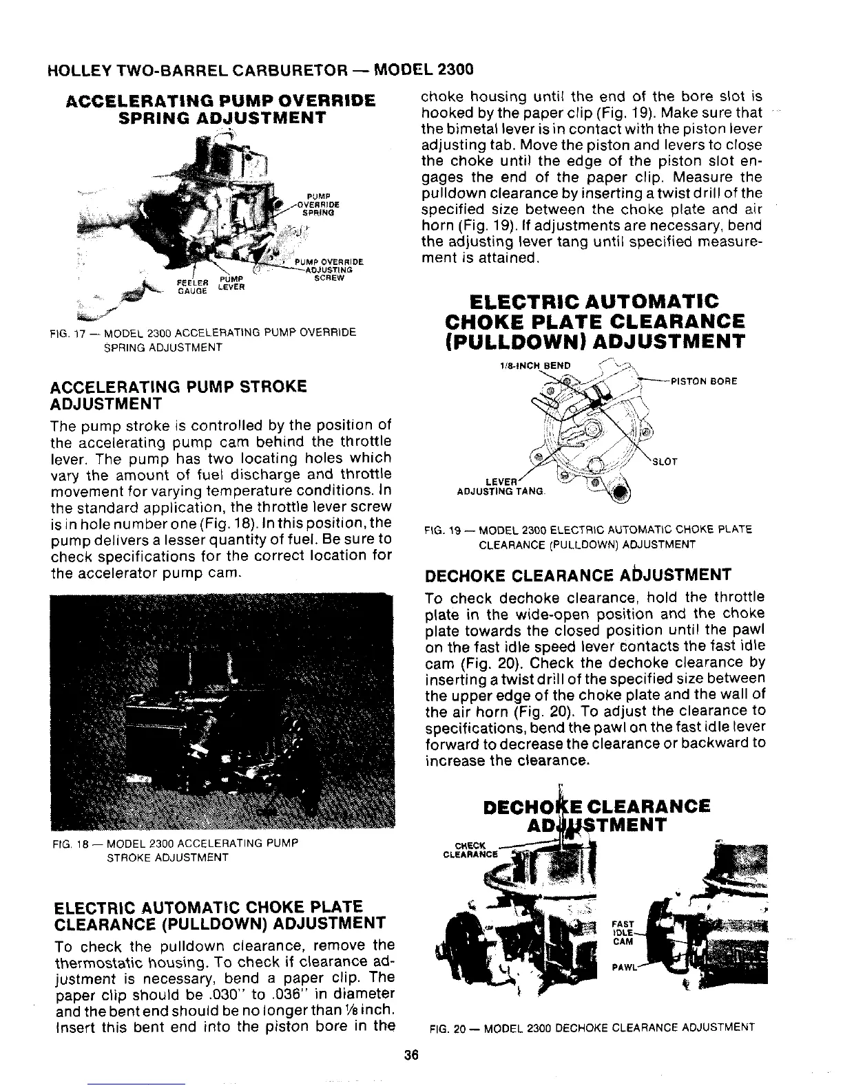 PCM 302 - Accelerating Pump Stroke Adjustment; Electric Automatic Choke Plate Clearance (Pulldown) Adjustment; Dechoke Clearance Adjustment