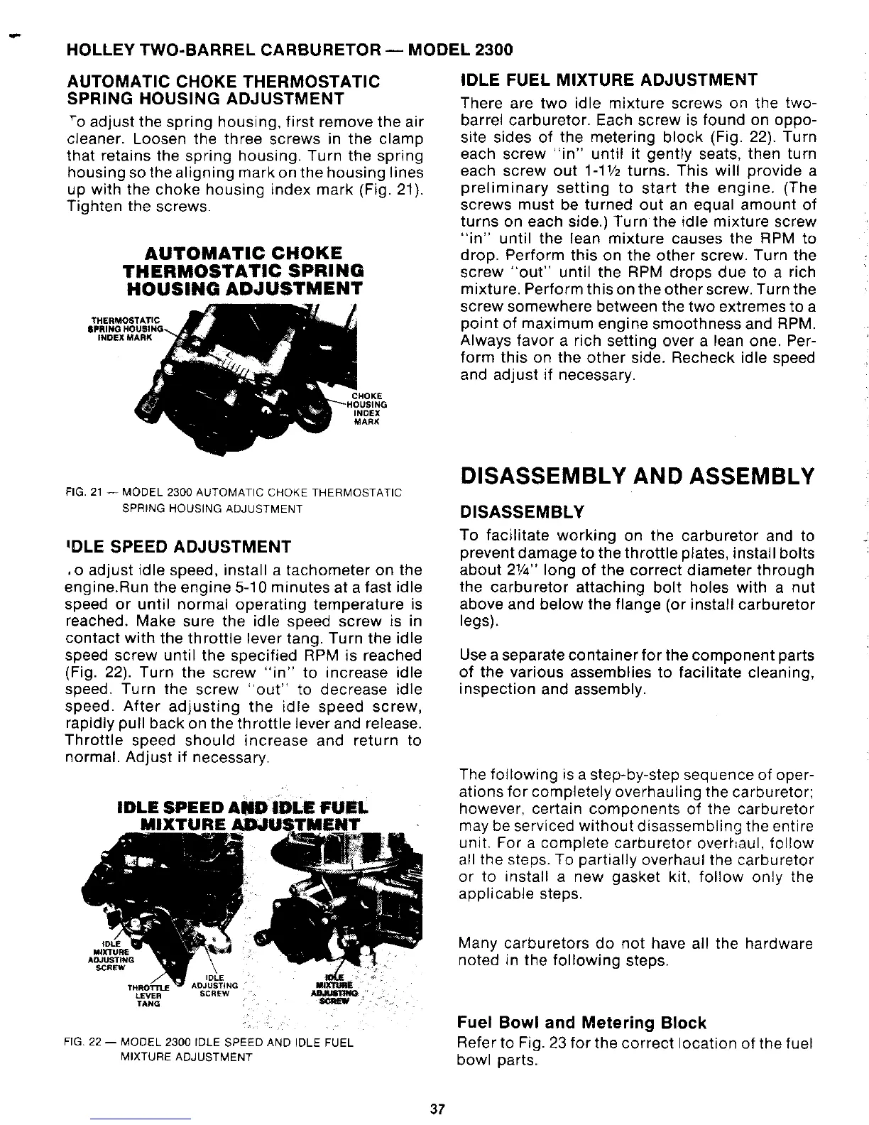 PCM 302 - Carburetor Disassembly; Automatic Choke Thermostatic Spring Housing Adjustment; Idle Speed Adjustment; Idle Fuel Mixture Adjustment