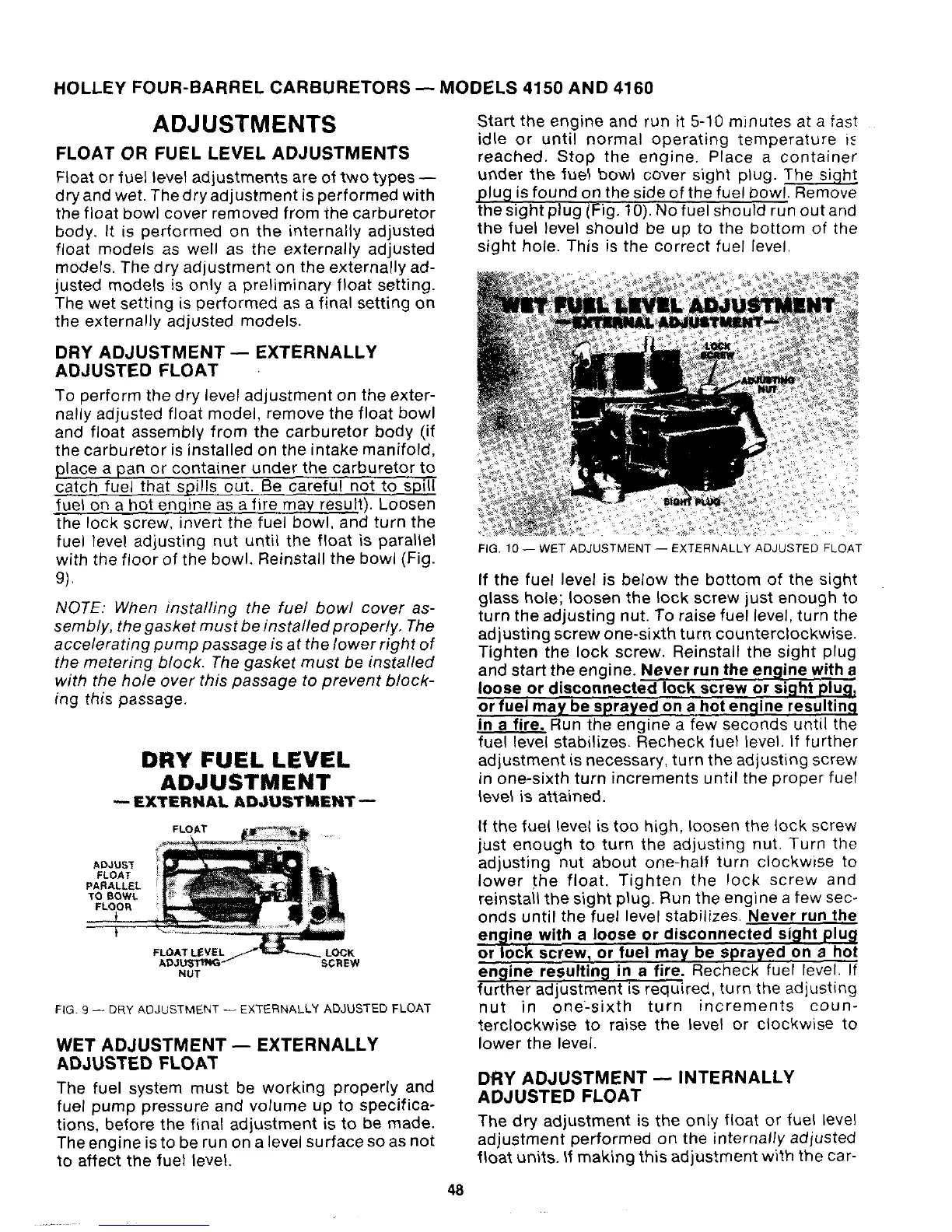 PCM 302 - Float or Fuel Level Adjustments (4150, 4160); Dry Adjustments;Wet Adjustments (4150, 4160)