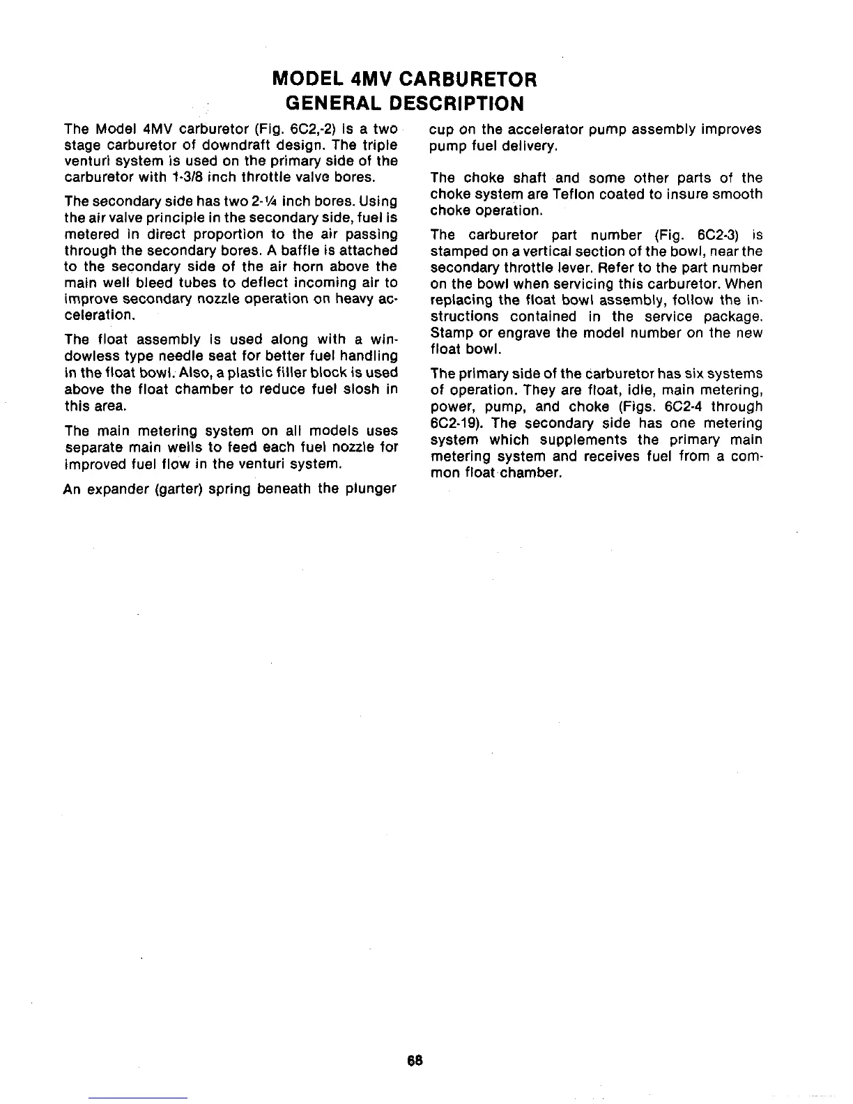 PCM 302 - Model 4 MV Carburetor - General Description