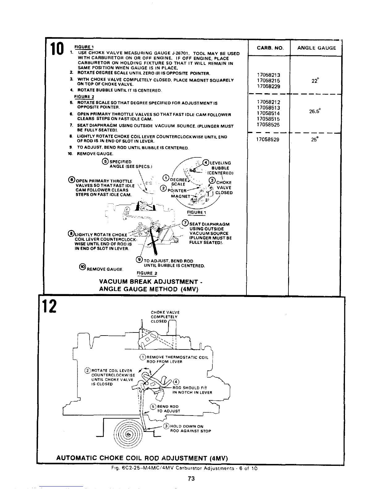 PCM 302 - Vacuum Break Adjustment - Angle Gauge Method (4 MV); Automatic Choke Coil Rod Adjustment (4 MV)