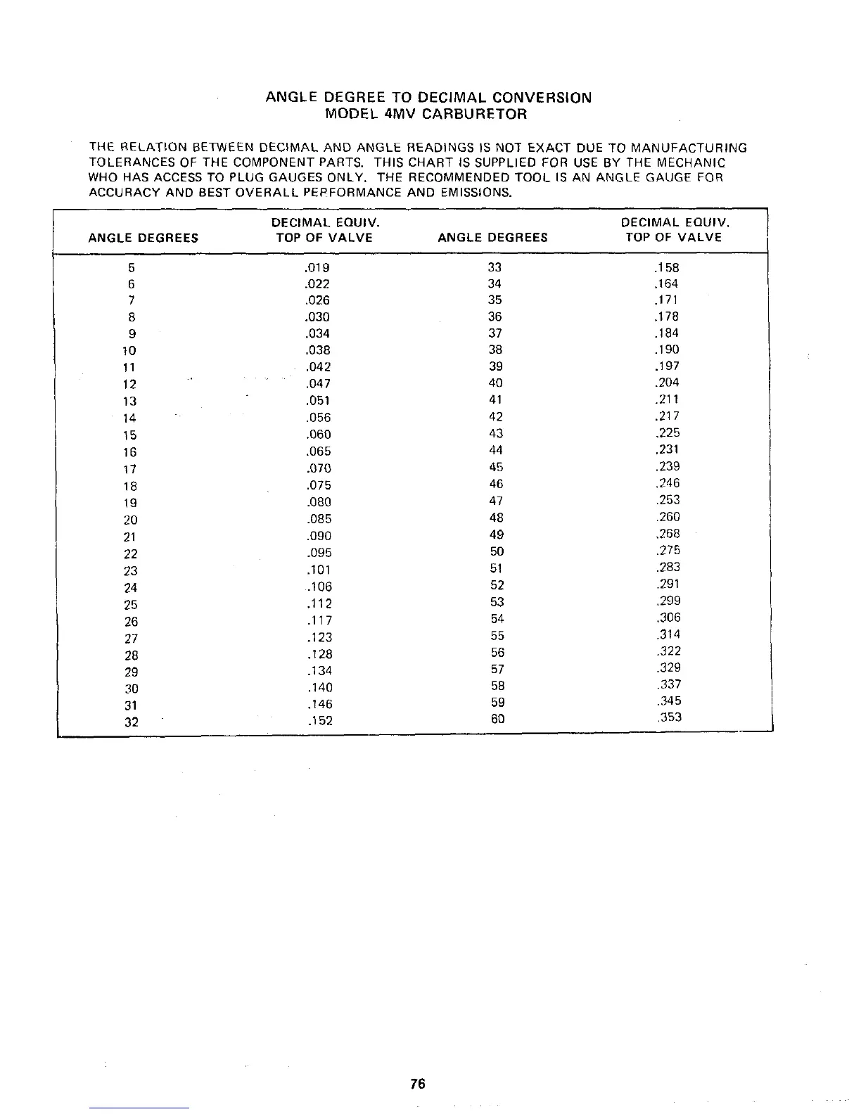 PCM 302 - Andle Degree to Decimal Conversion - Model 4 MV Carburetor