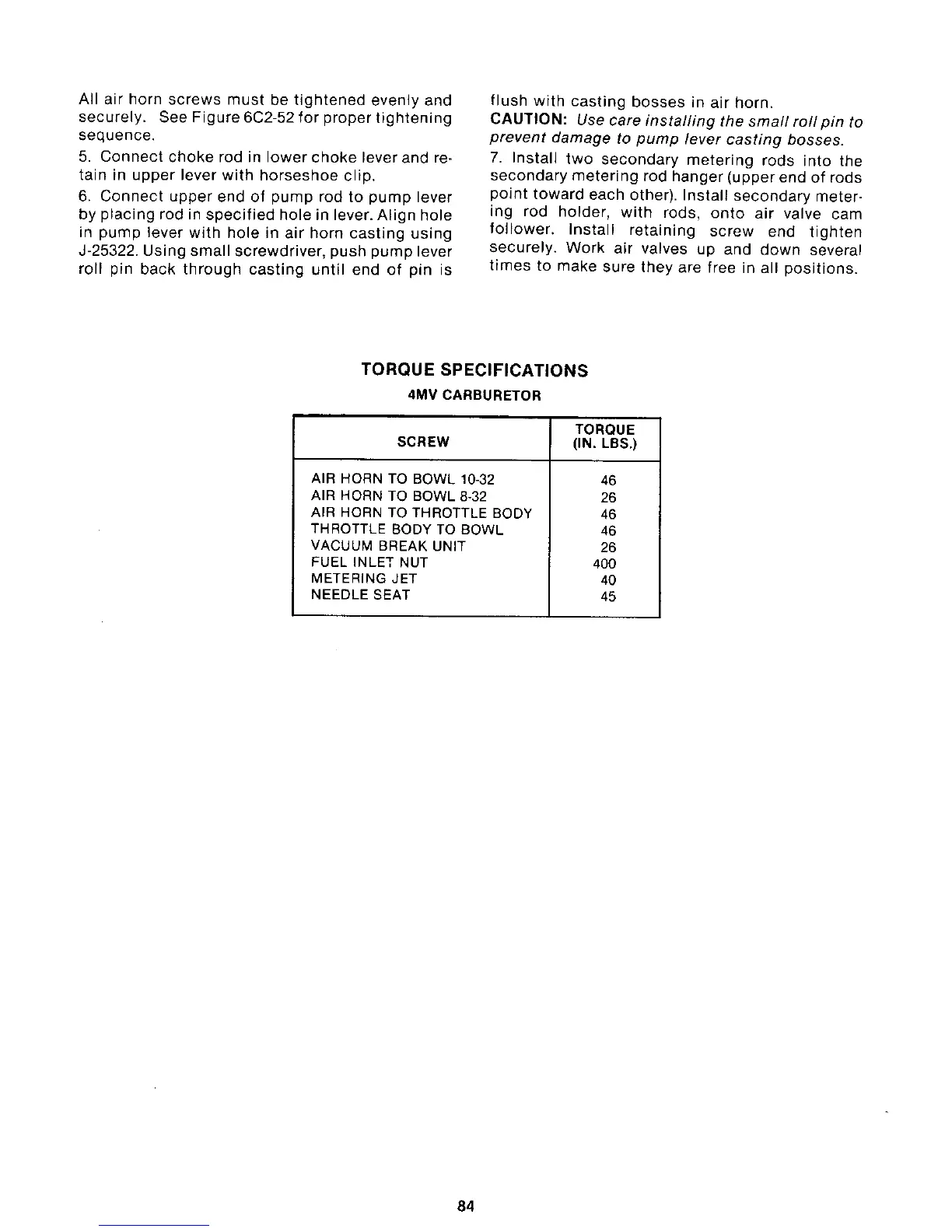PCM 302 - 4 MV Carburetor Torque Specifications