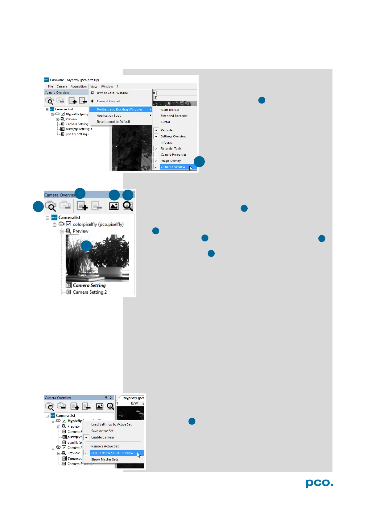 connected cameras. It displays a list of all connected PCO