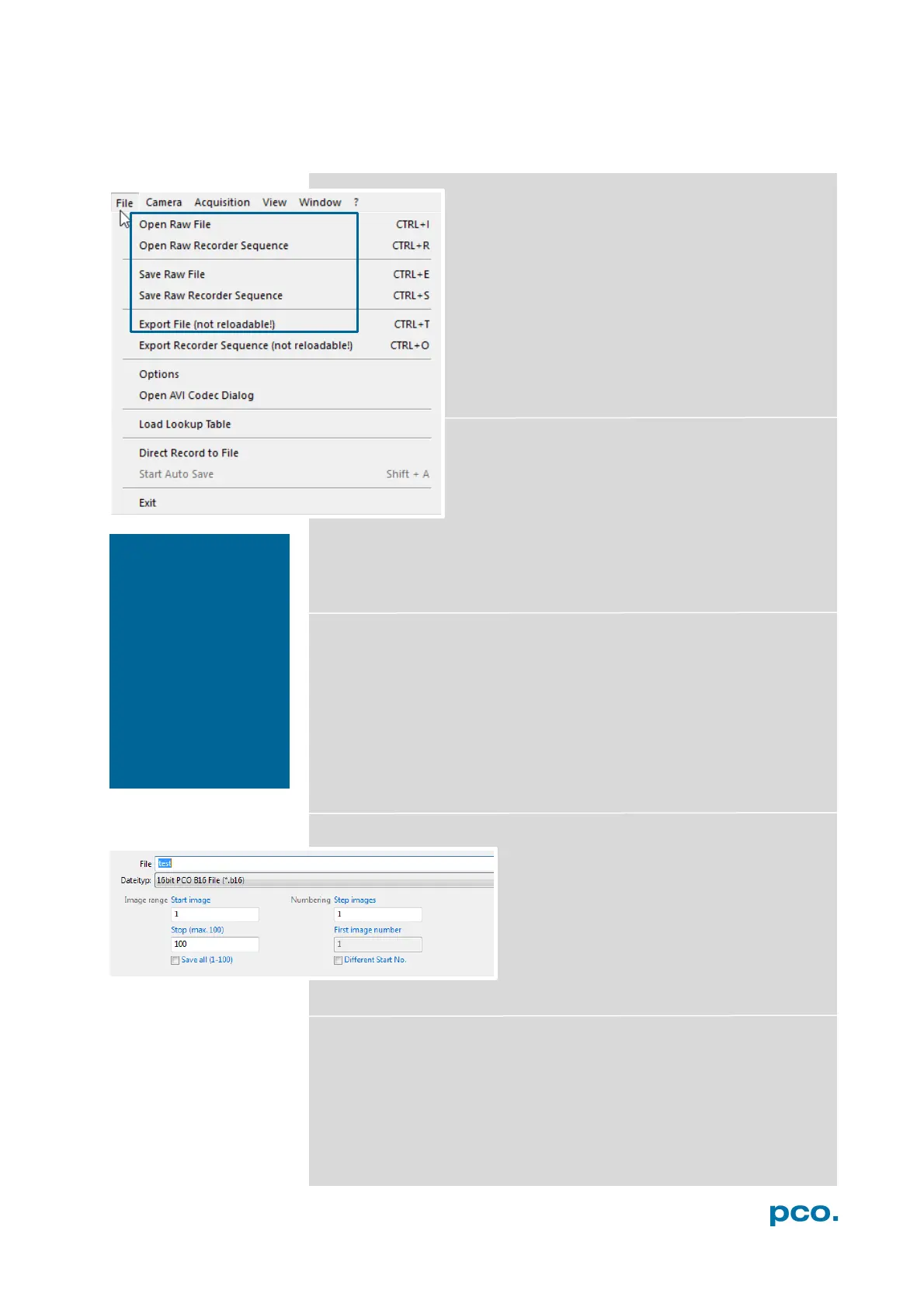 extension and the format of *.b16, *.pcoraw, *.tif and multi tif can be