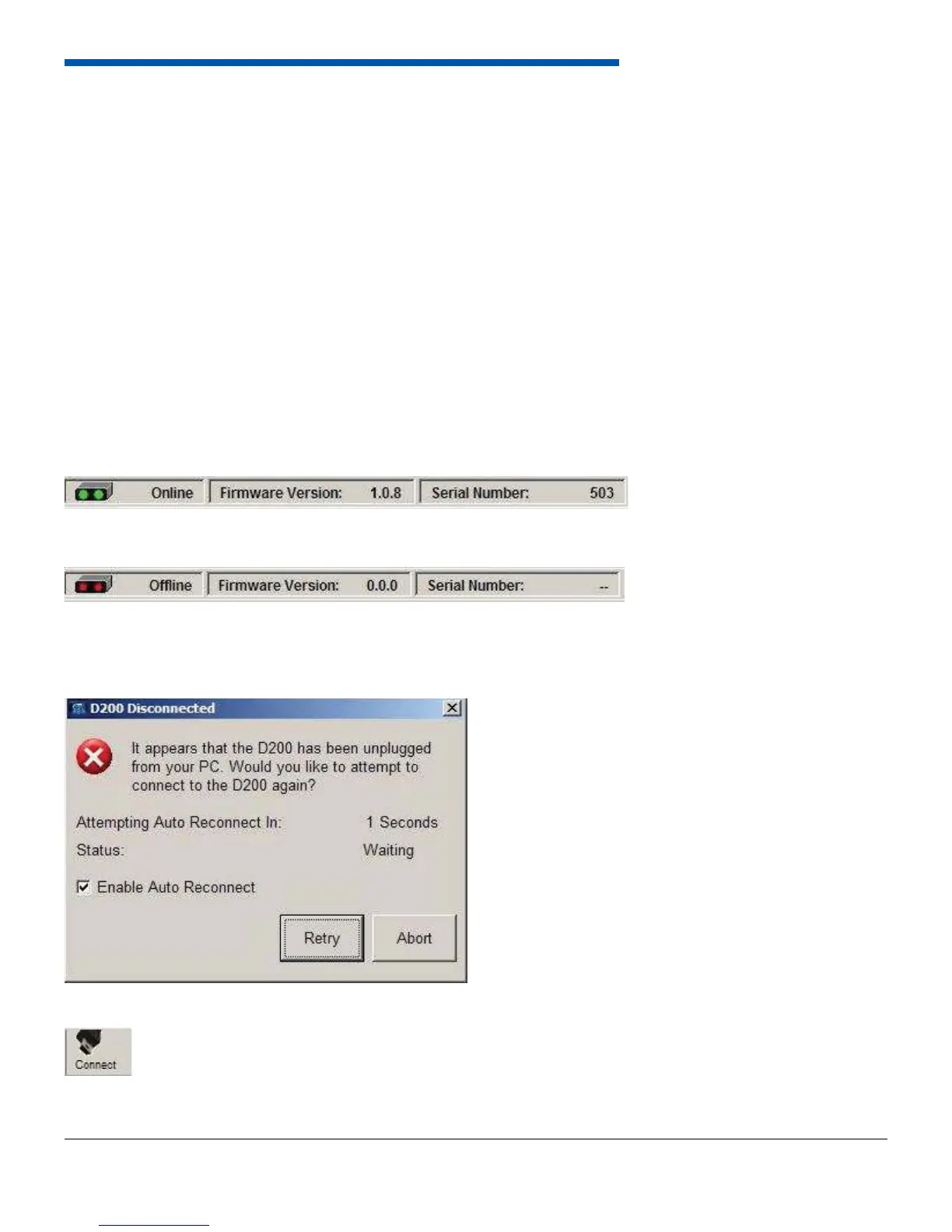 dash. It will automatically try to reconnect to the dash every 5 seconds, or when the Retry button is pressed. To stop the