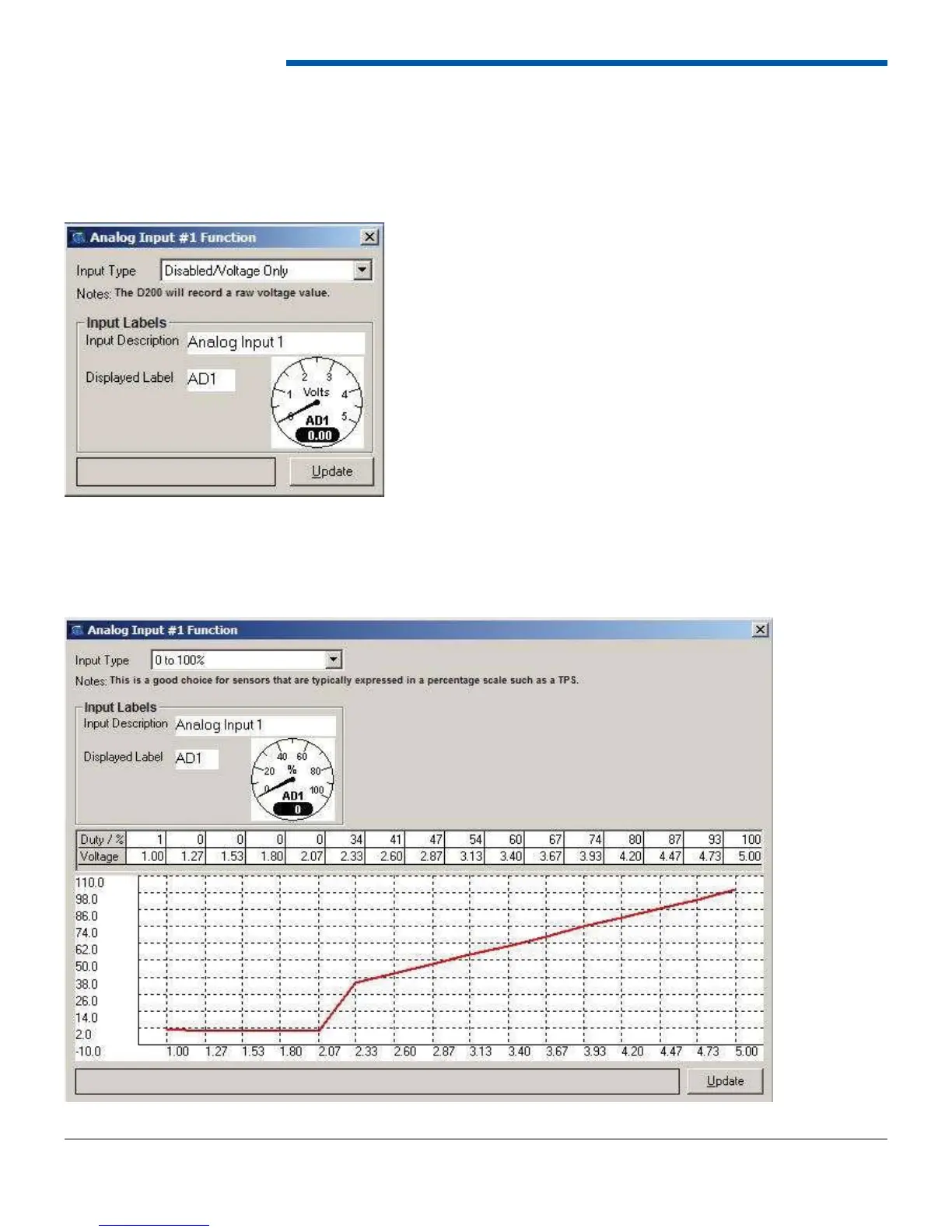 The Voltage Only function displays the input voltage to the channel. If a gauge is selected to monitor this channel it will