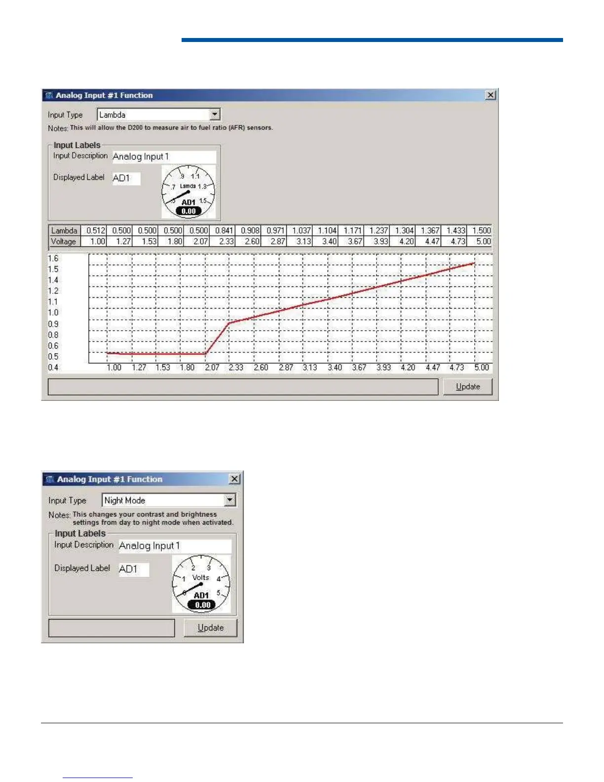 The Lambda function allows the user to map a lambda or air/fuel ratio value to an input voltage using the 16-point table.