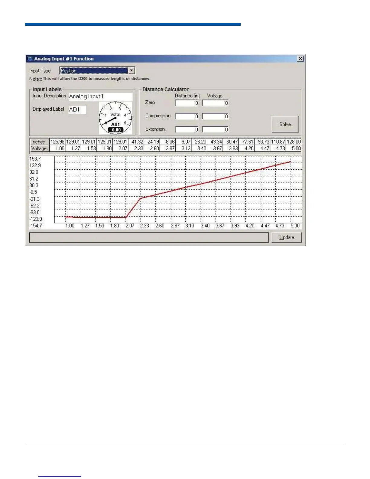 record the distance and the voltage in the Extension form. Click Solve. The graph and 16-point table will be fi lled in with