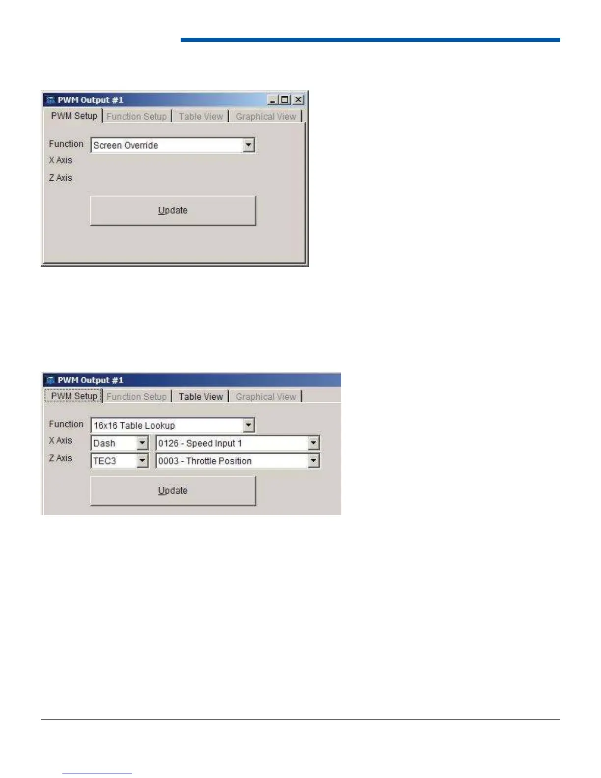 When a PWM output is set to the Screen Override function, it will allow direct control of the output duty cycle from the