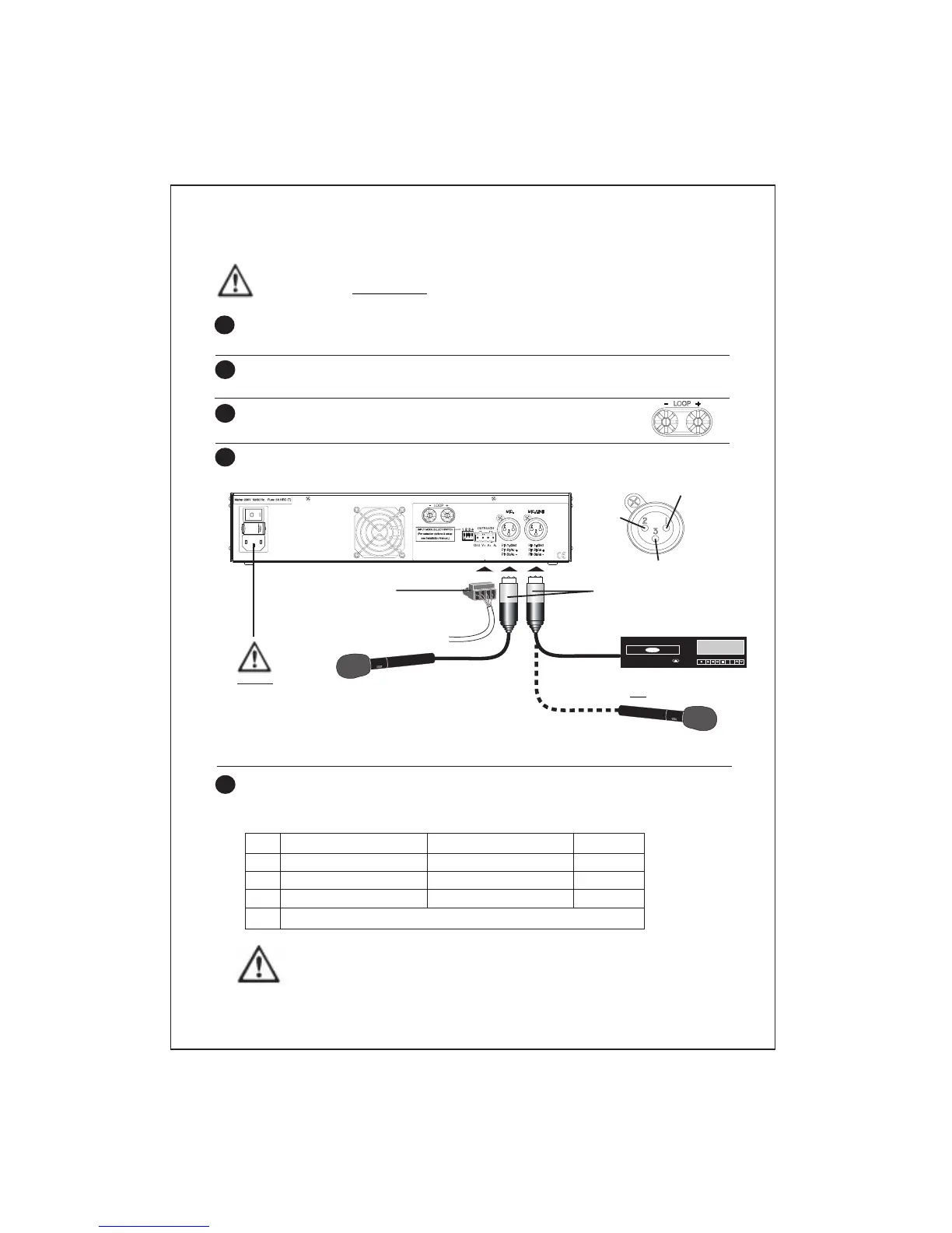 Connect an input signal source (microphone, line, outreach or any combination of