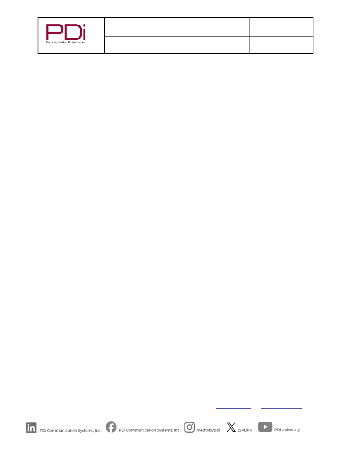 PDi Communication Systems, Inc. ▪ 40 Greenwood Ln ▪ Springboro, Ohio 45066 USA ▪ www.pdiarm.com and www.mymedTV.com ▪ Phone