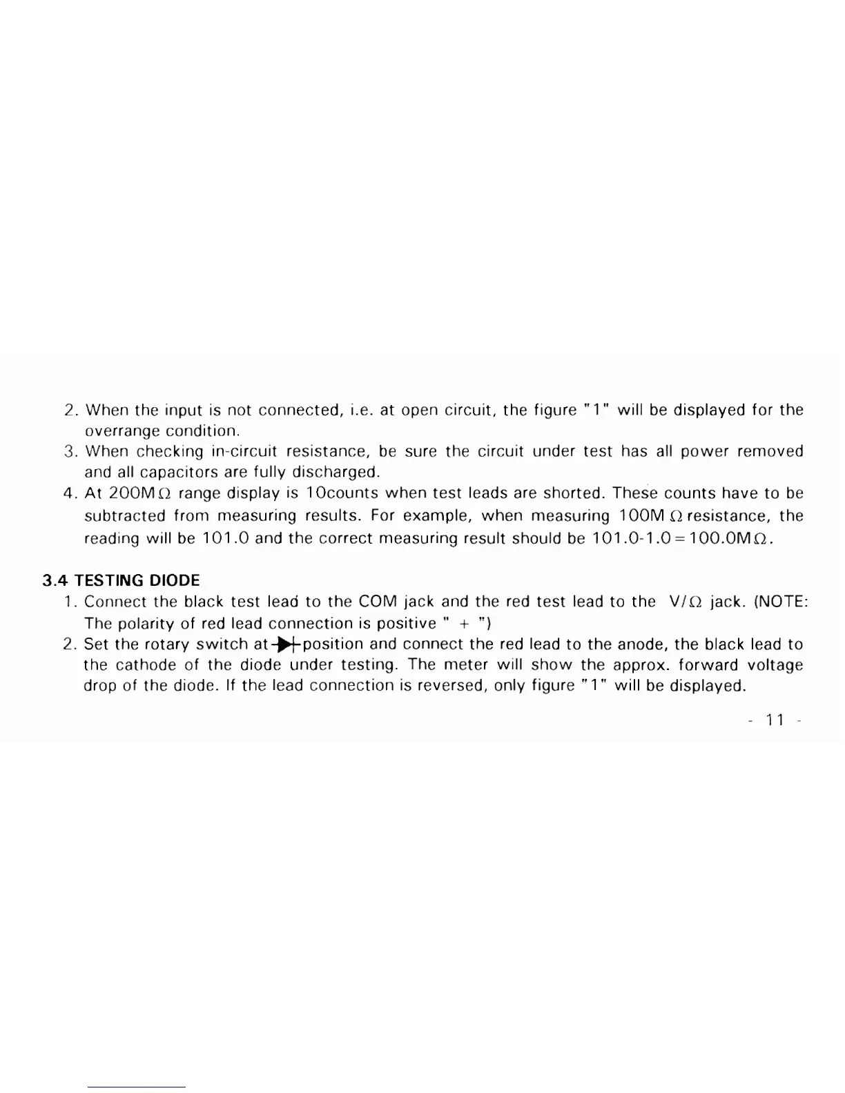 drop of the diode. If the lead connection is reversed, only figure "1" will be displayed.