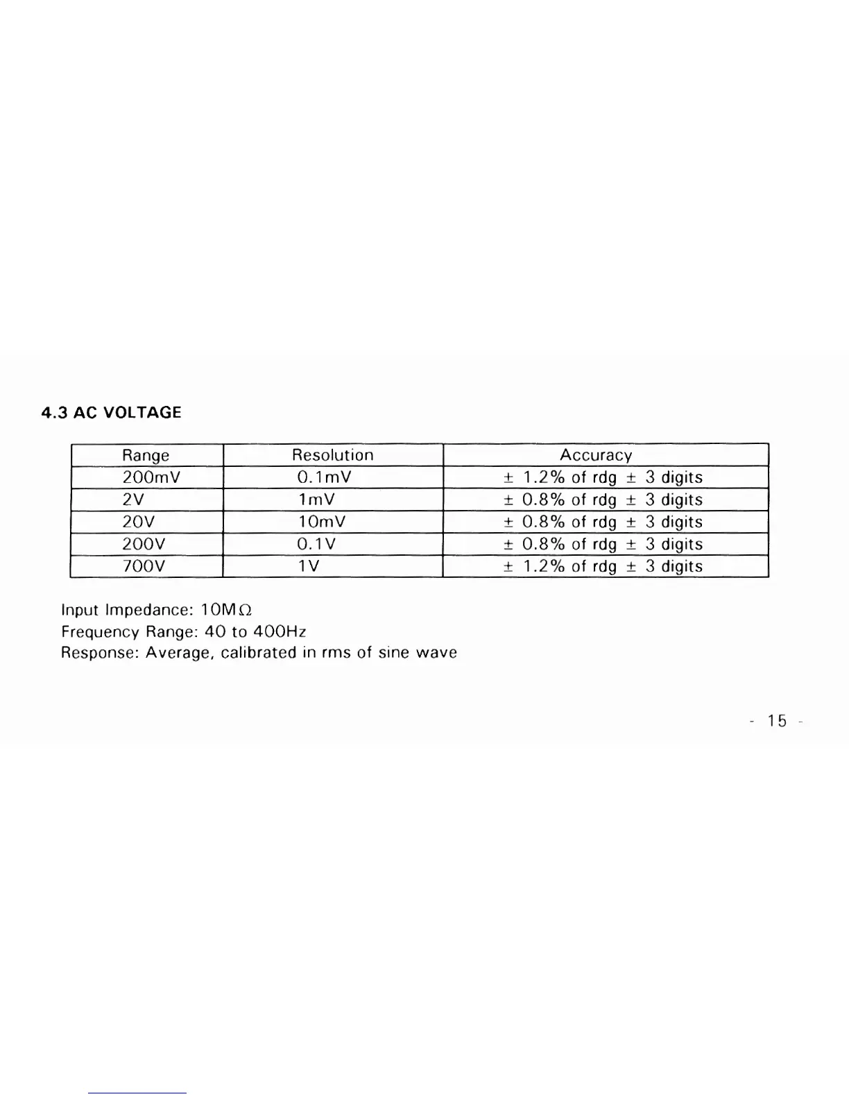 Response: Average, calibrated in rms of sine wave