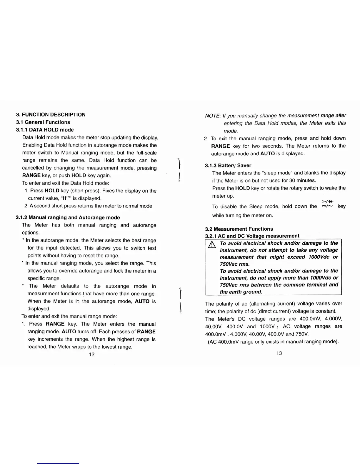 range remains the same. Data Hold function can be