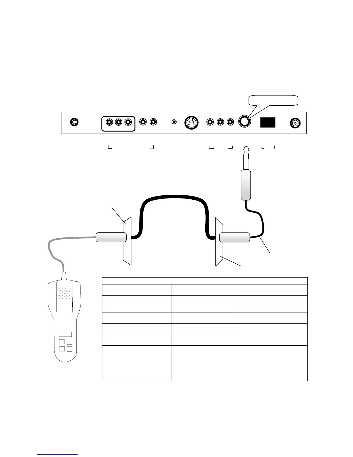 A ¼” stereo style pillow speaker (pendant control) jack is located on the TV’s connector panel on