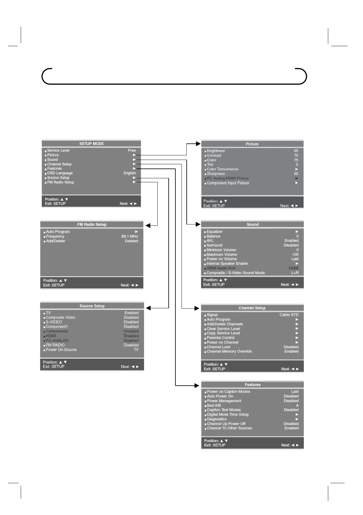 Press the SETUP button on the IR remote control to return to the preceding menu.