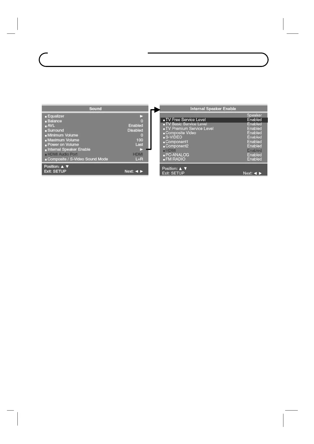 The speaker’s inside the TV’s cabinet can be turned on or off for either different TV Service