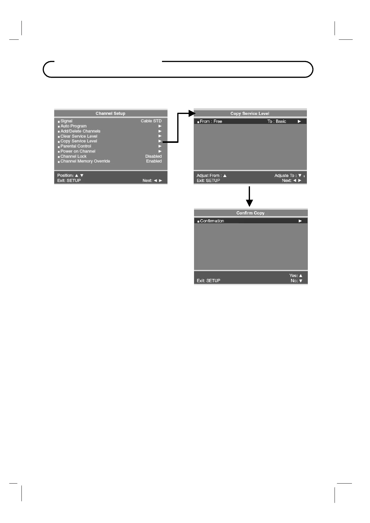 selected Service Level. Press the CH▼