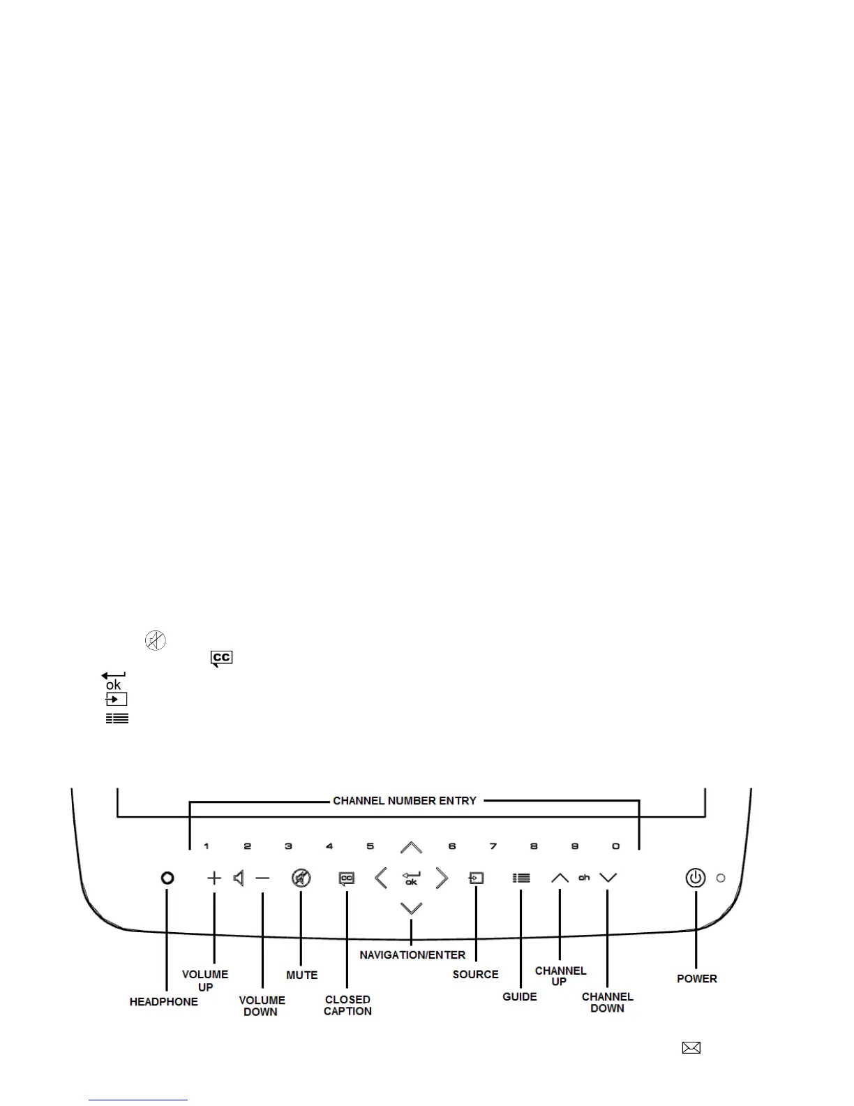 Youcanusetheglasskeypadtochoosepower,source,channel,volume,andguide.Thenavigationalarrowsused