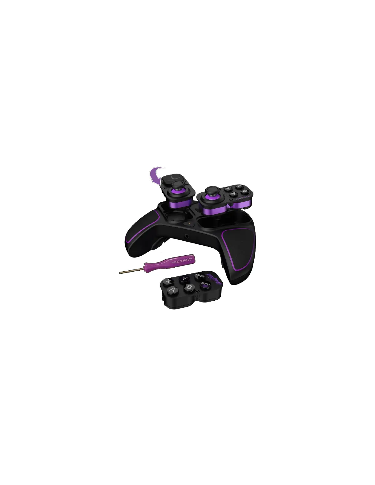 E. El módulo de botón derecho y palanca se puede quitar y reemplazar por el módulo de Fightpad