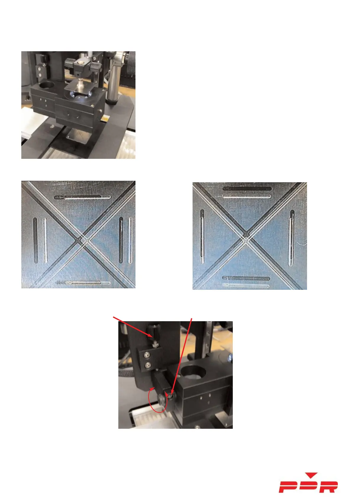 4. Move prism in from left. Focus lens on bottom plate and lower top plate into