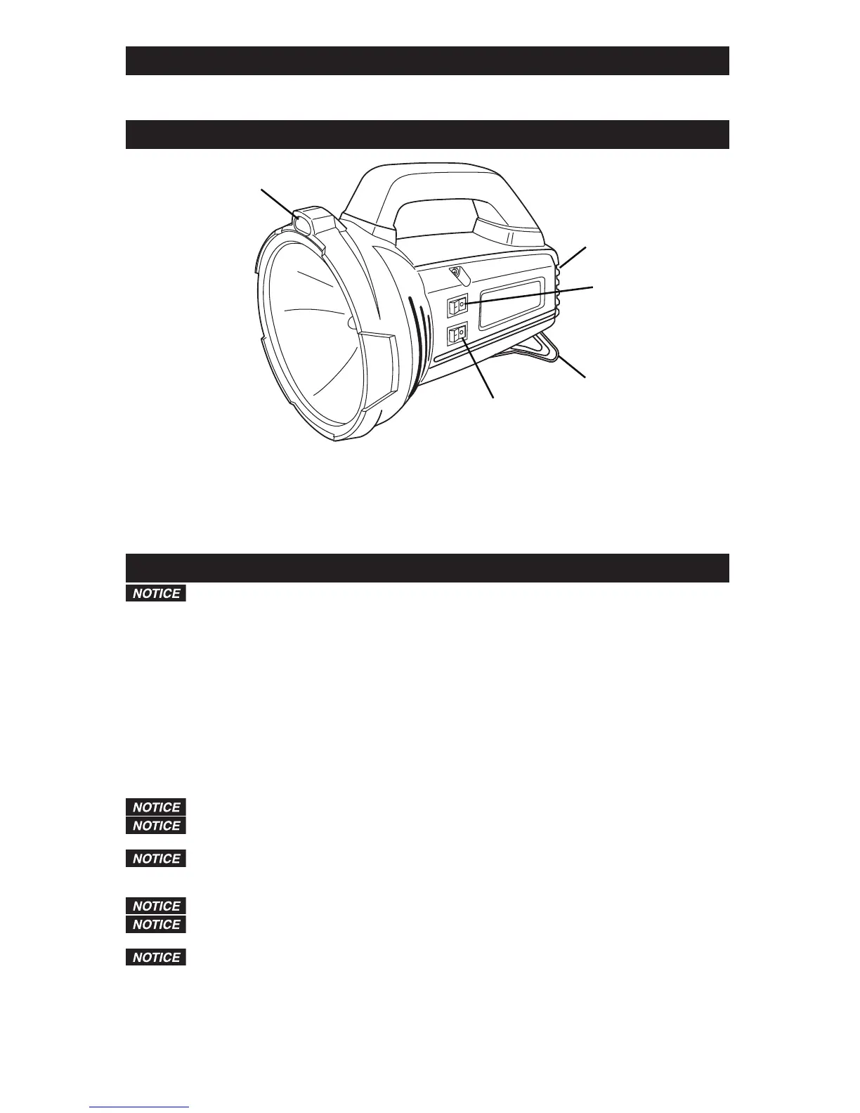 warranty. Keep the Spotlight ON/OFF and LED accessory light ON/OFF switches in the OFF position