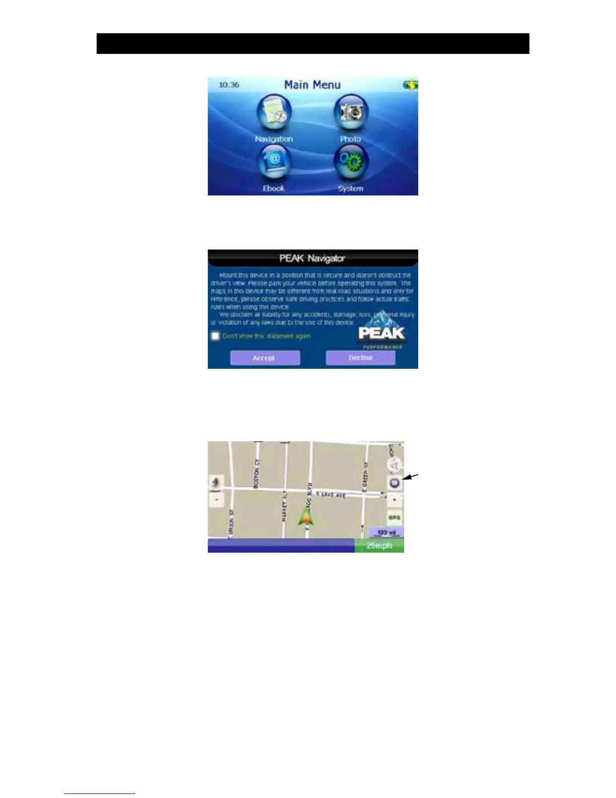 Read the statement and press the “Accept” button to enter the “Navigation” system or the “Decline”