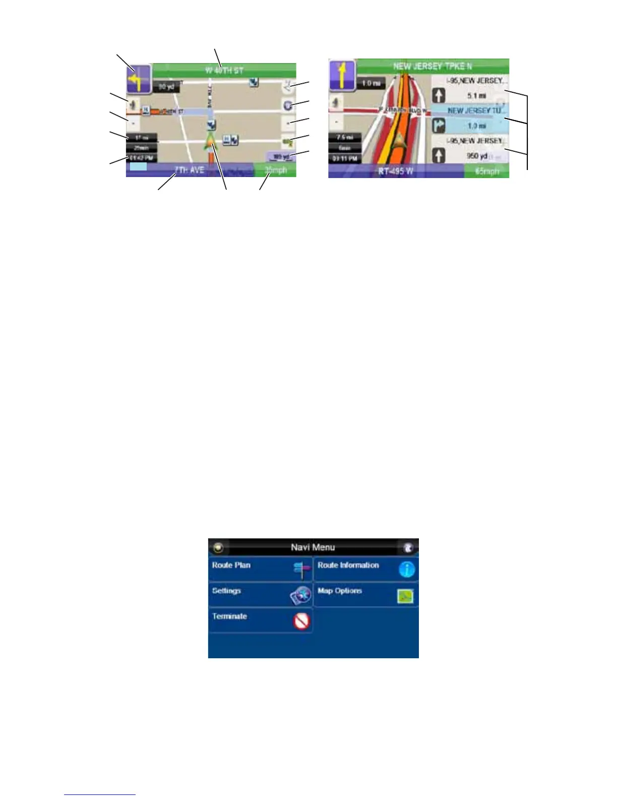 During navigation, press the “Menu” button to enter the “Navi Menu”.