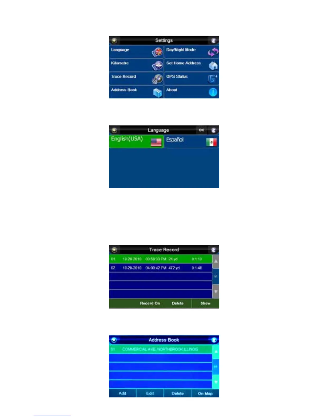 The “Trace Record” function allows you to record and trace your routes on a map. The “Trace Record”