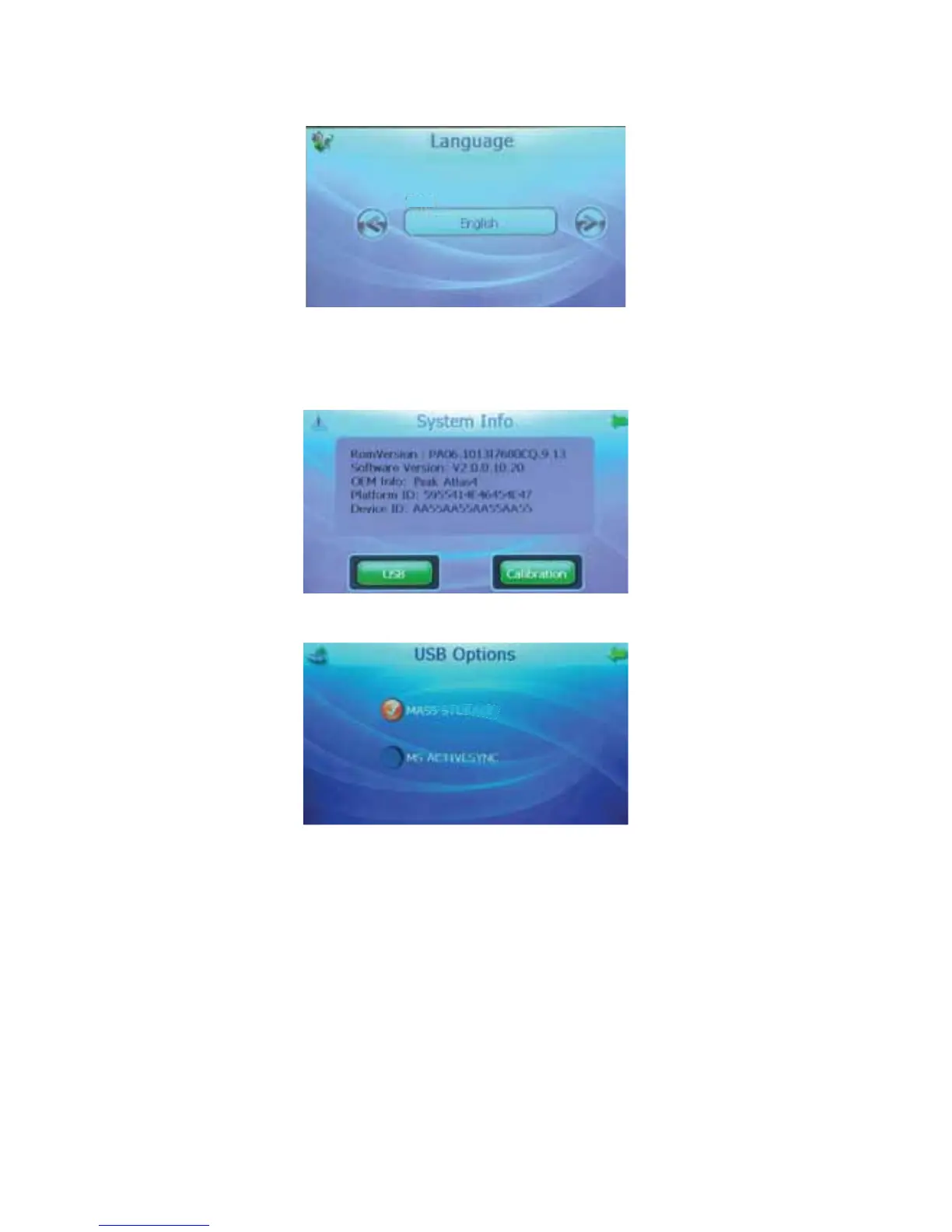 This screen allows you to select how the unit connects to the PC, using MS Activesync or acting as