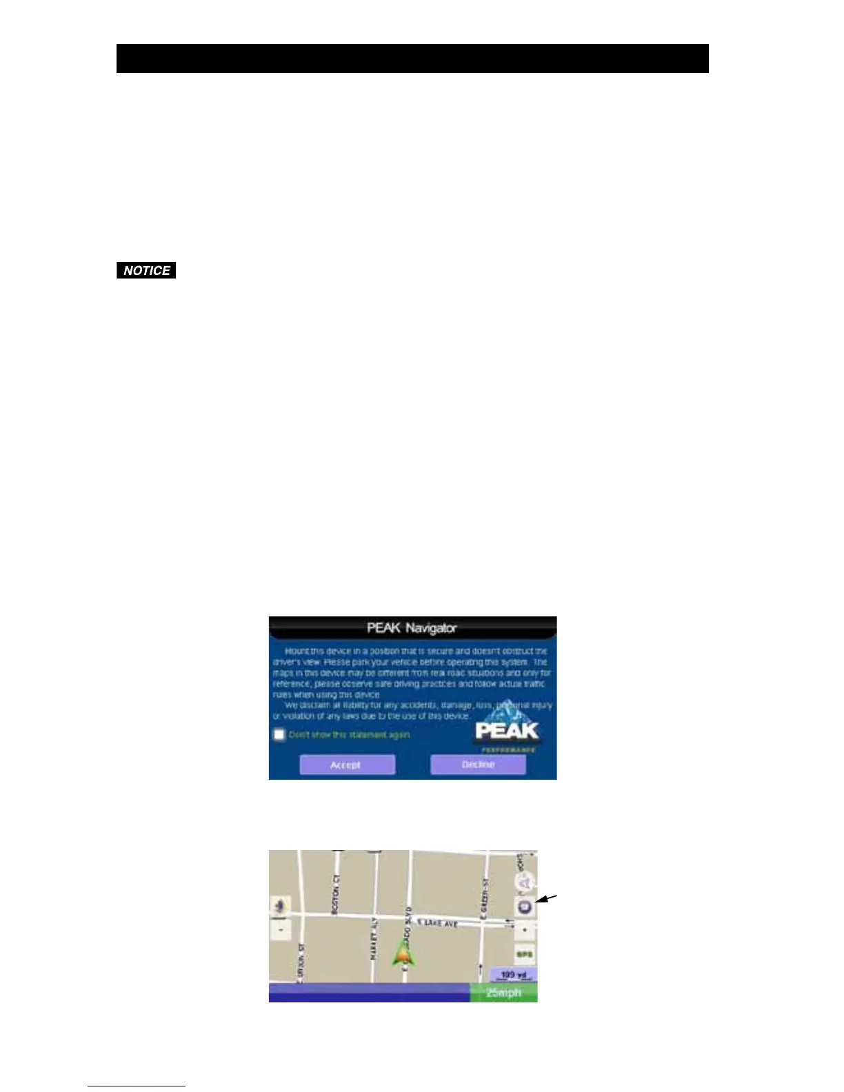 to continue to the navigation screen. If you press the “Decline” button, it will exit the navigation