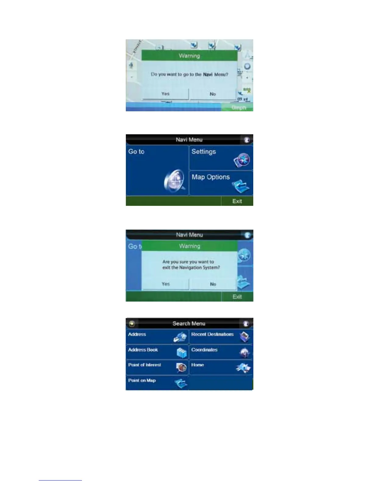 NOTE: If you press the “Exit” button, this message will pop up. Press “Yes” to exit the Navigation