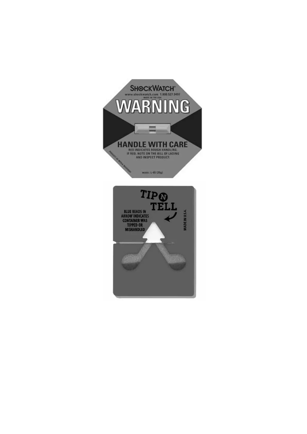 Check ‘SHOCKWATCH’ and ‘TIP-N-TELL’ labels for signs of rough handling prior to