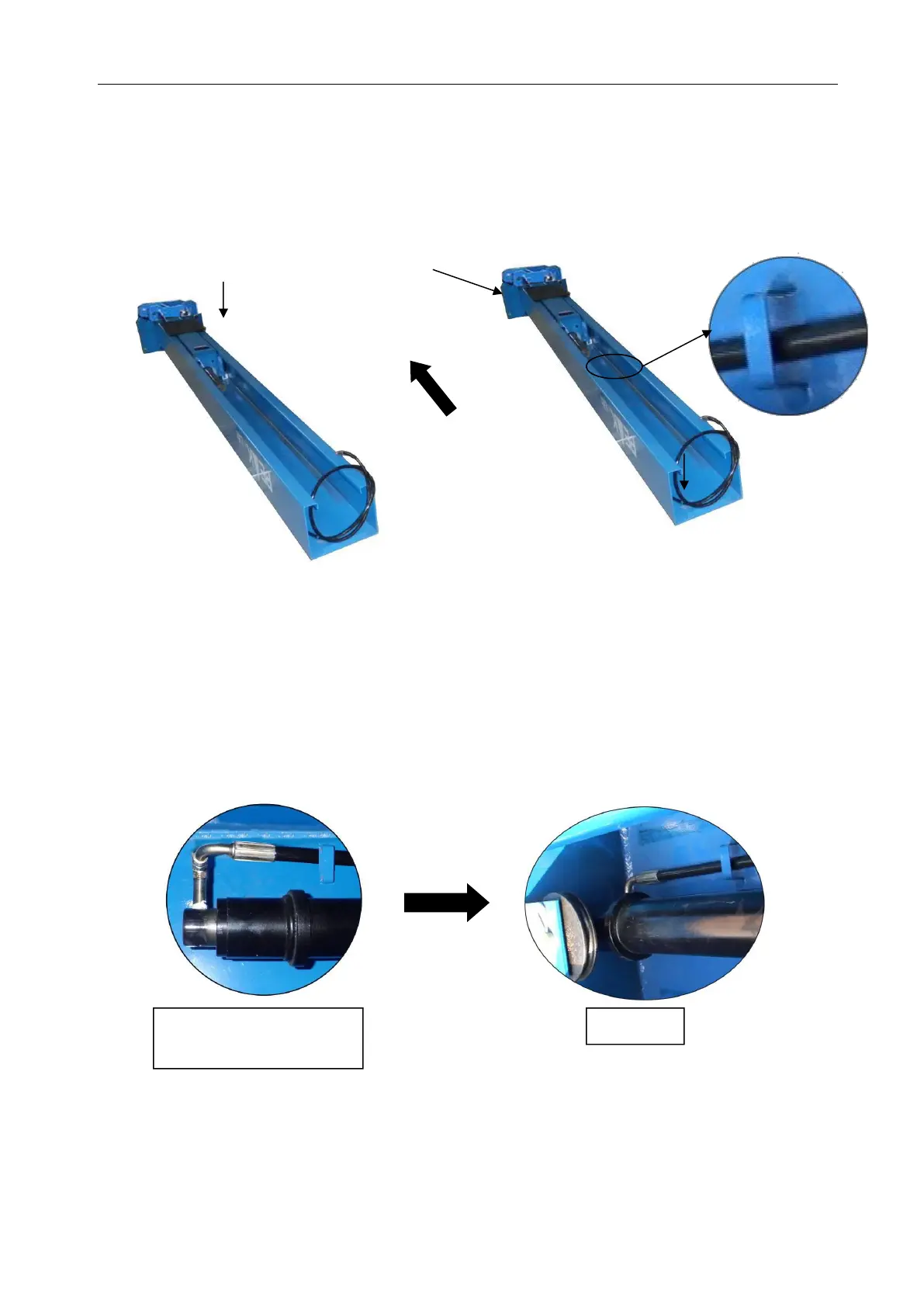 Push the carriages, connecting the cylinder fittings and then connect the oil hose to