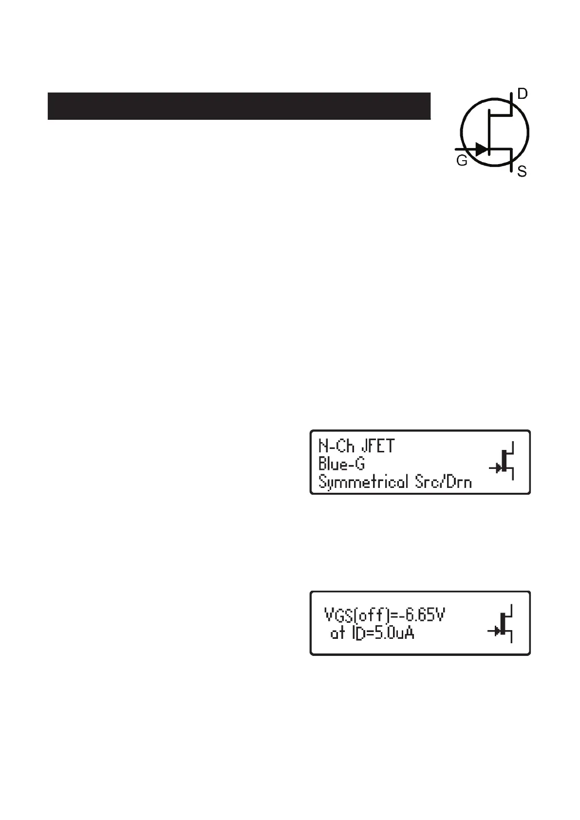 JFET type, gate terminal and measured parameters are displayed however.
