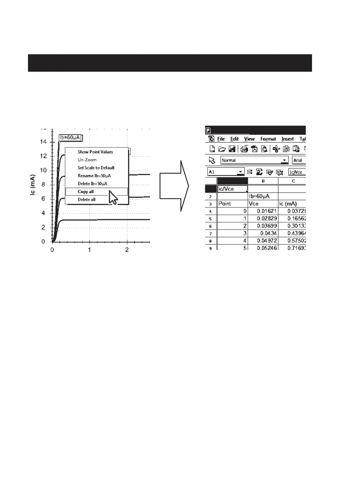 measurement data that created the curves is now in the clipboard. You can then