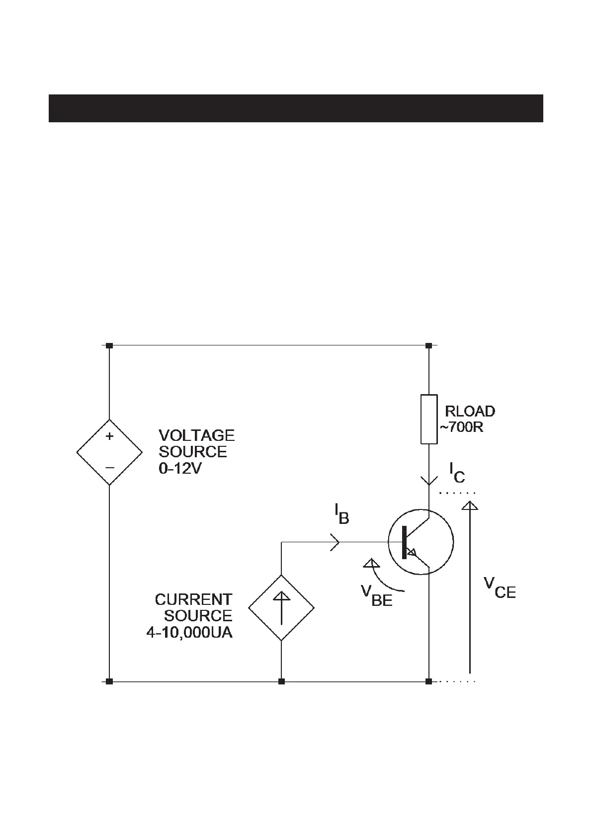 Example shown is for an NPN transistor. Polarities are reversed for