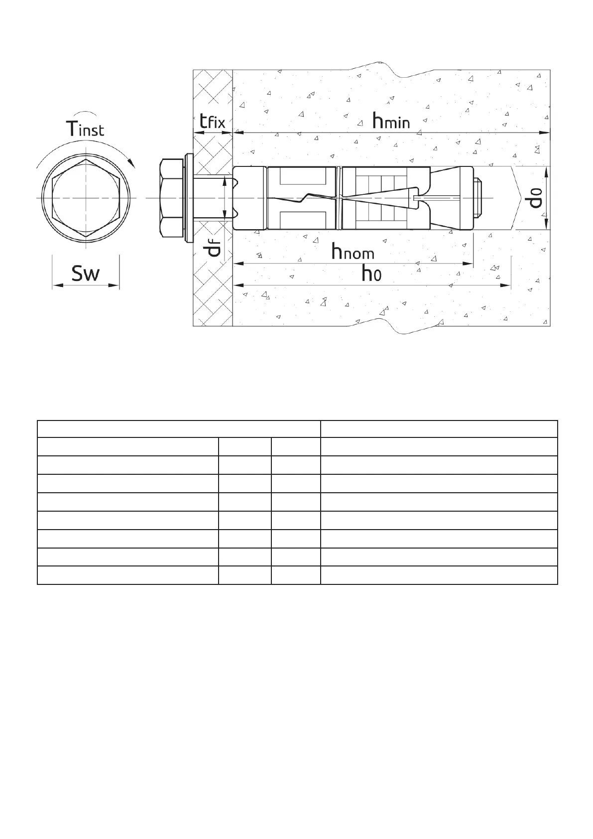 Rawl Bolt Data Table 1