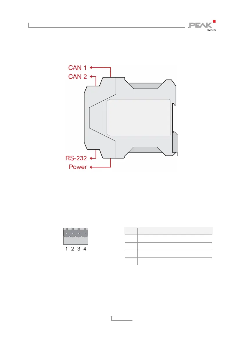 The CAN connectors are located on the upper side of the casing.
