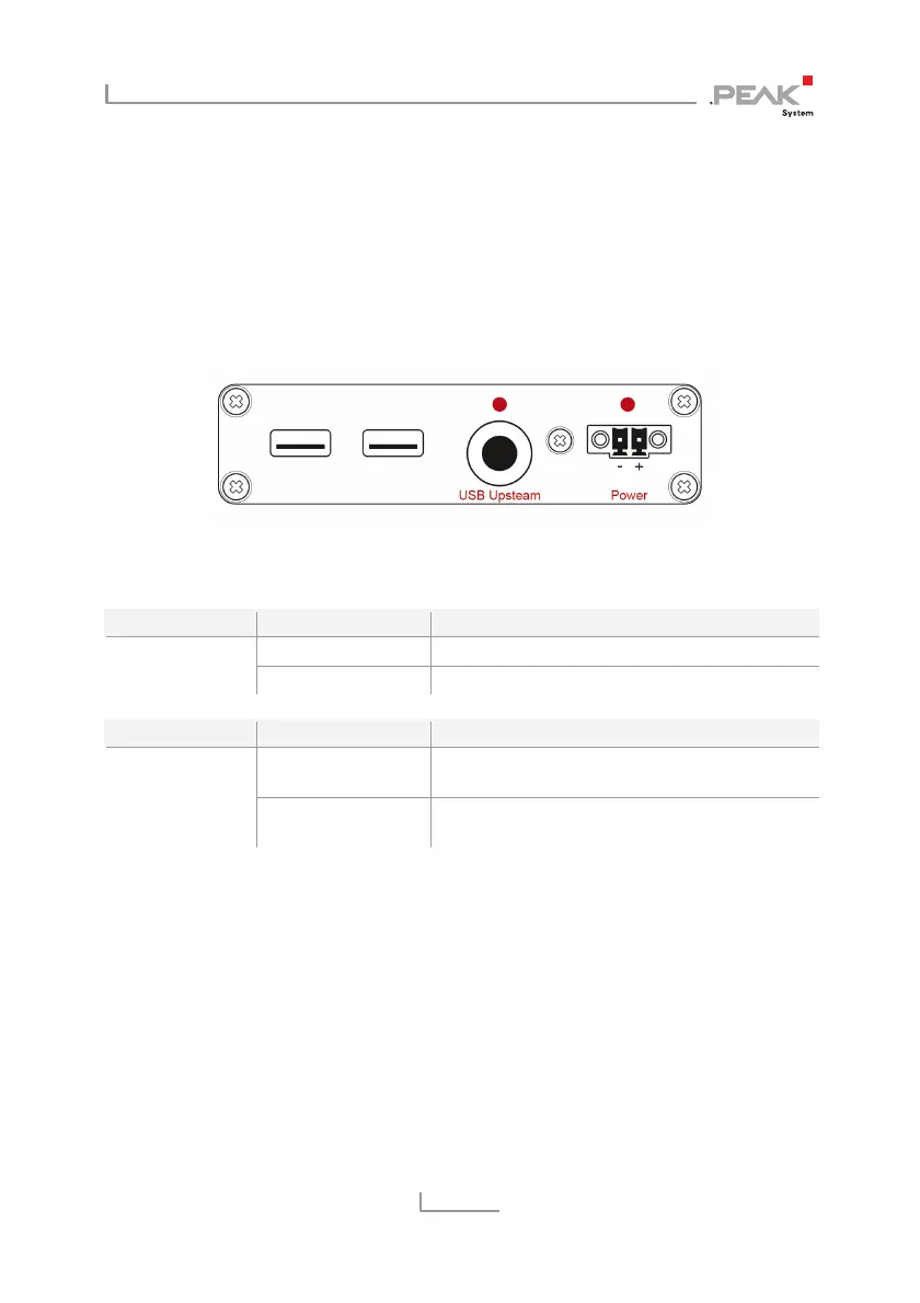 The PCAN-USB Hub has several status LEDs.