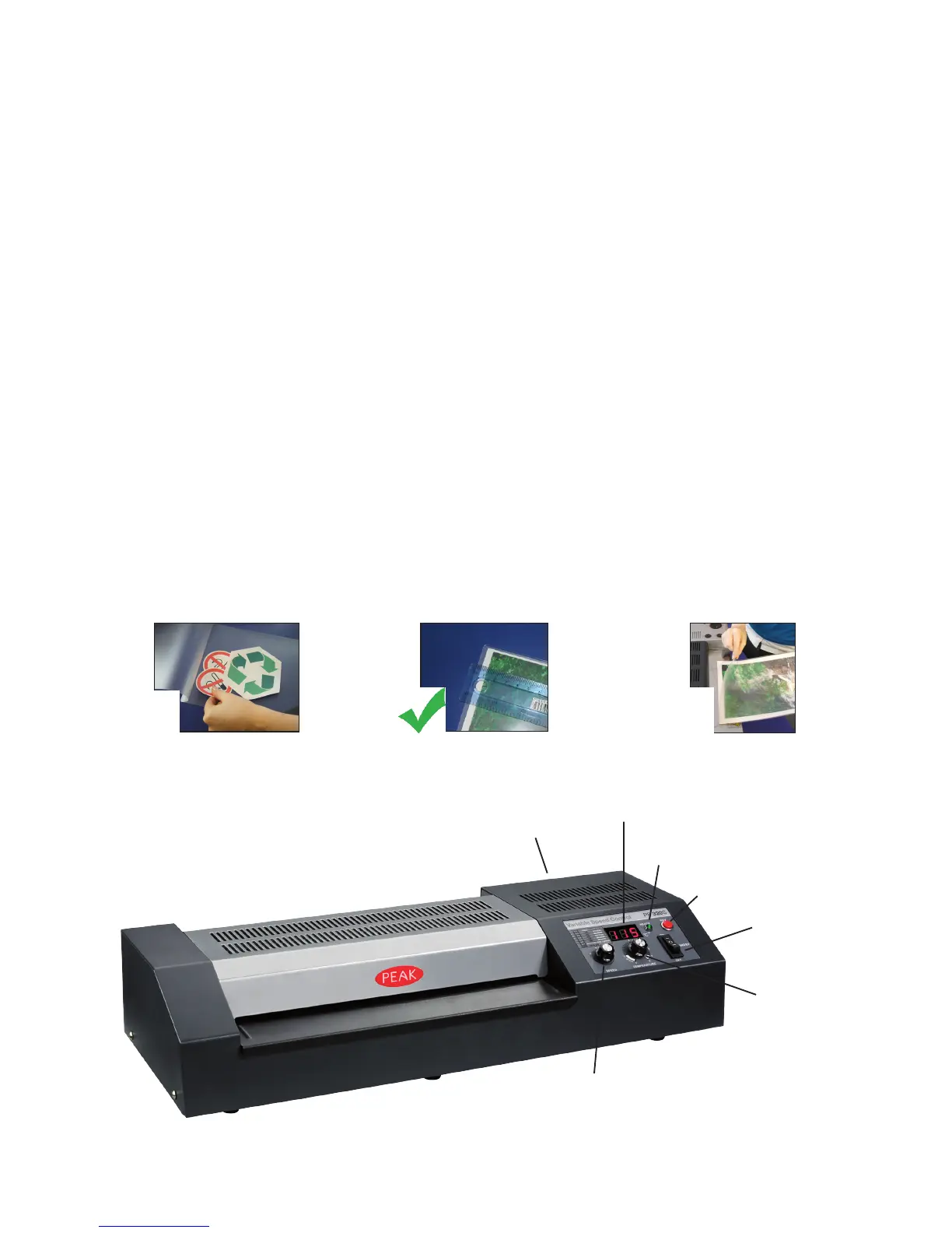 Thank you for purchasing the Peak Performance PS320. Peak laminators are designed to give you professional,